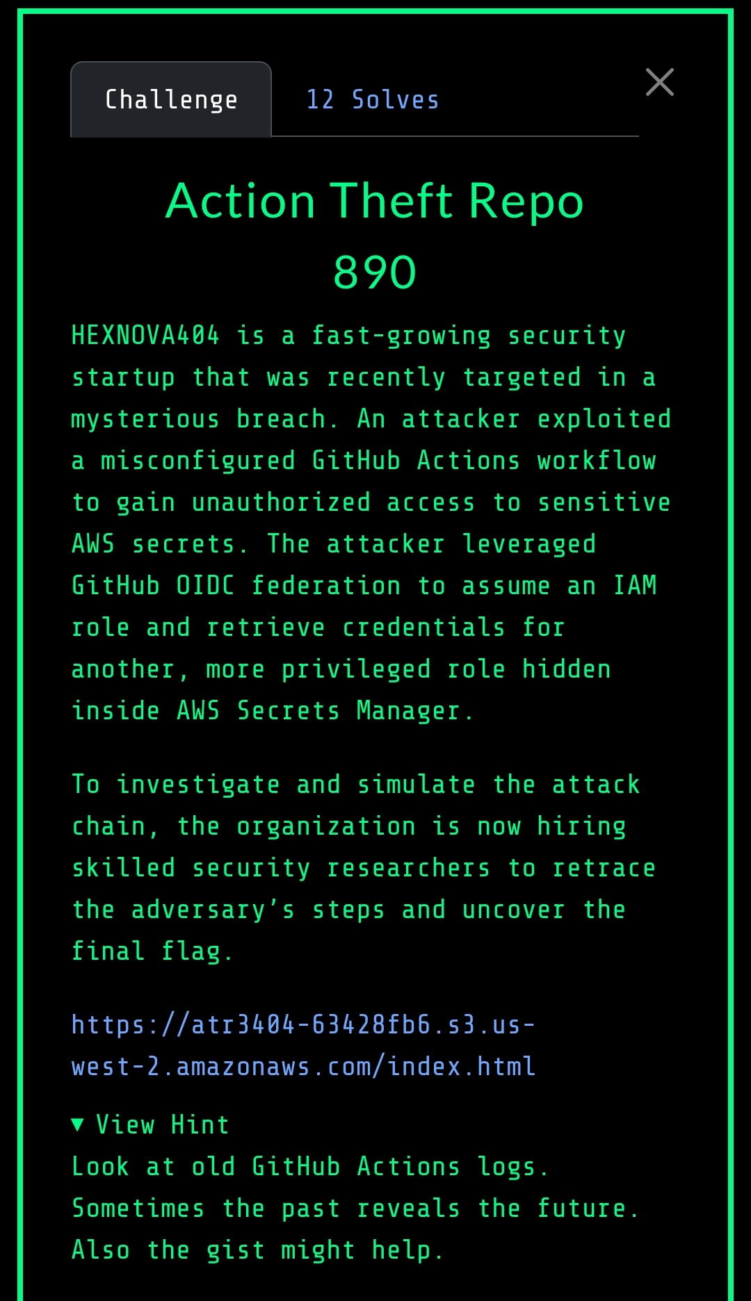 Esto tenía todas las vibras del reto del año pasado Warden's Ruse, así que creamos un fork privado e intentamos asumir el rol expuesto usando OIDC y obtener el secreto de AWS Secrets Manager.