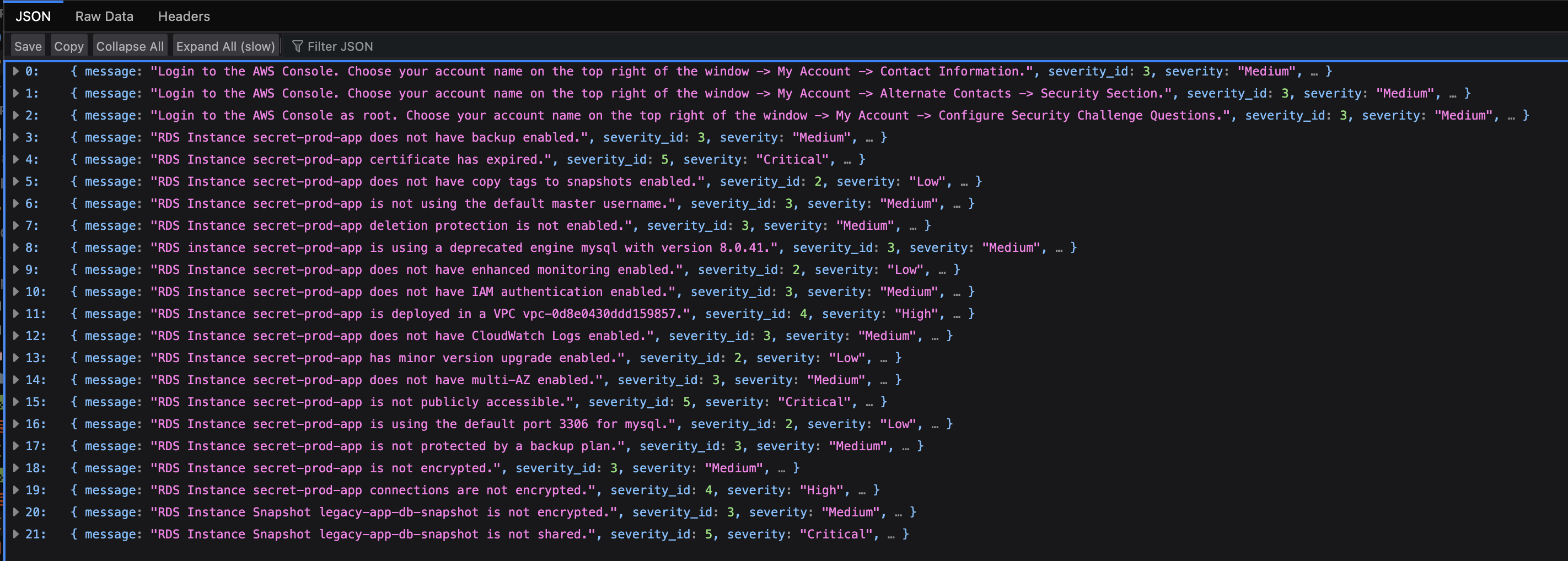 El escaneo reveló un snapshot RDS llamado legacy-app-db-snapshot